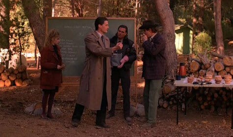 FBI Special Agent Dale Cooper is standing in the woods outside Twin Peaks, giving the local sheriff’s department a lecture on Tibet. He’s set up a chalkboard among the Douglas firs. He writes a suspect’s name on the board, “Jacques Renault”, then picks up a rock and throws it at a glass bottle positioned several yards away. Whatever rock hits the bottle - that’s the suspect he would follow up on. Whatever standard procedure the police had in Twin Peaks, or whatever rational approach the FBI would take - was thrown out of the window here.